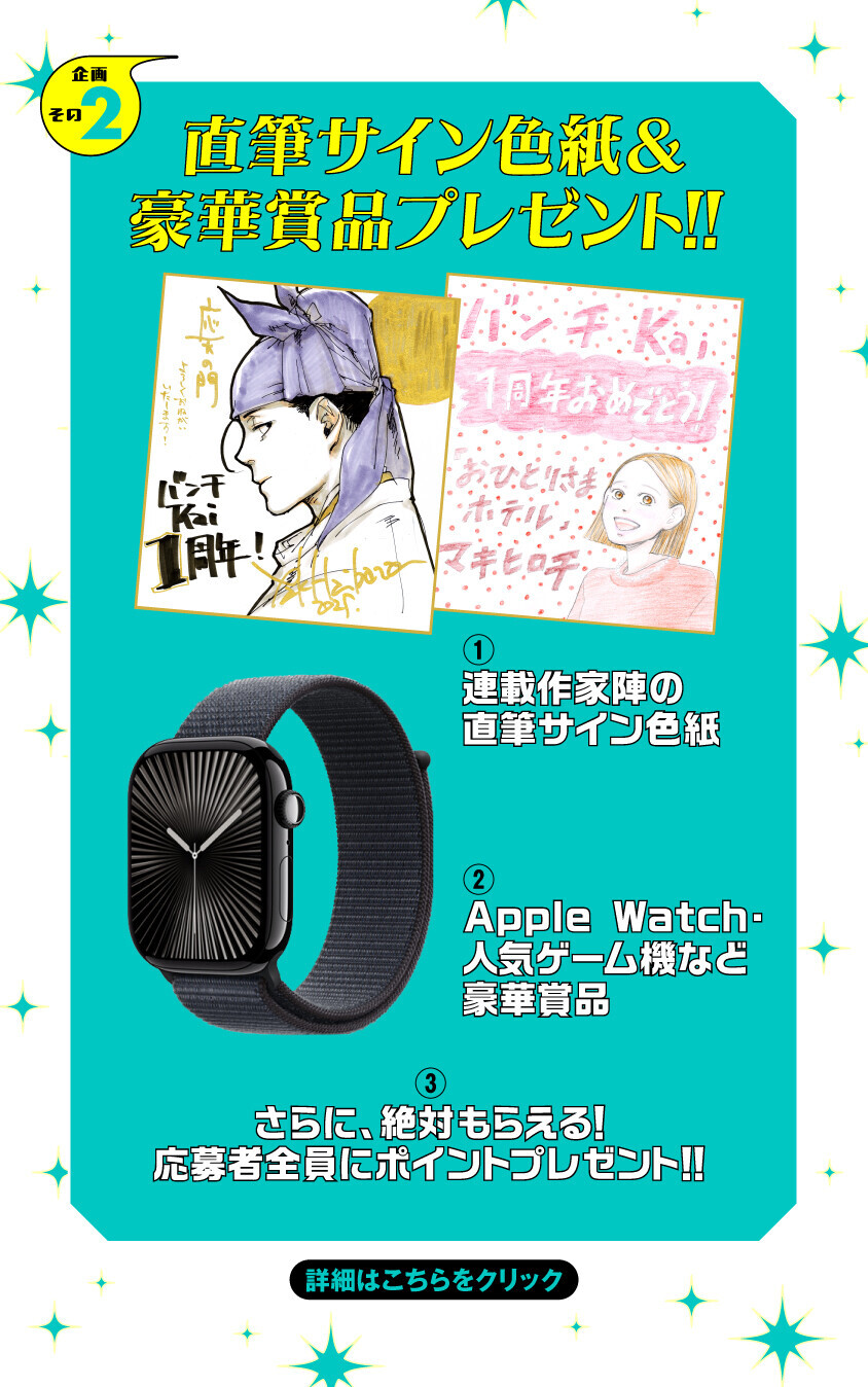 2024年4月にスタートした「コミックバンチKai」がおかげさまで1周年! ということで、7月の特別企画を実施いたします!