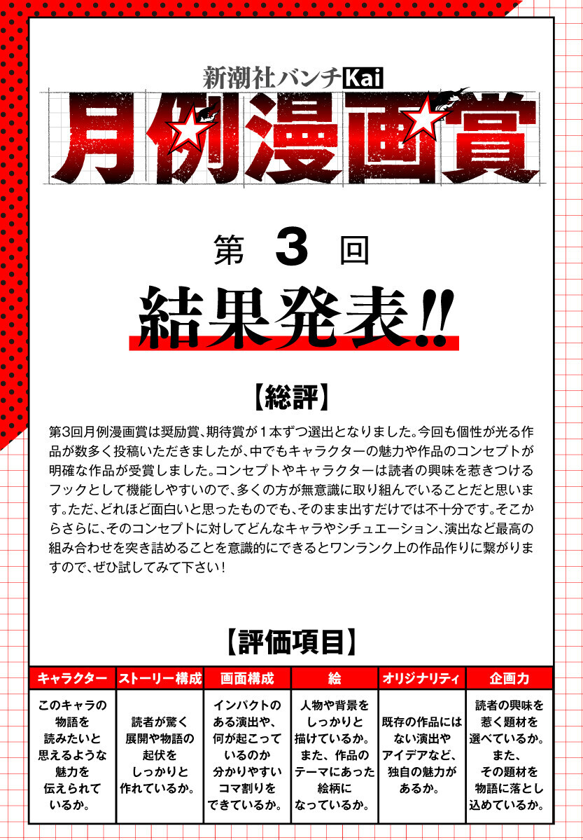 第3回「月例漫画賞」結果発表!!!